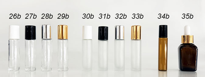 | 32b | ขวดแก้วลูกกลิ้ง 10 ml. ขุ่น (ลูกกลิ้งเหล็ก) + ฝาเงิน | 2 x 5 ซม. | 8.5 ซม. |